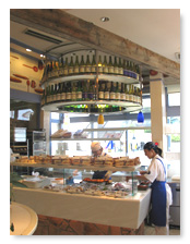 このような長いキャリアの末、2004年6月に横山さんは「ブランジュリKヨコヤマ」をオープンした。料理、製菓、製パン全てに携ってきた横山さんが最終的にパンの道を選択したきっかけは何だったのだろう。 「料理もパンもお菓子もひとつの食の世界と捕らえているんです。だから、パンだけを選んだという意識はあまりないですね。それに、パンなら惣菜パンも菓子パンもある。自分がやってきたことをパンという形で全て表現できるような気がするんです」 独立にあたって最も気を使ったのは“無理をしない”ということだった。 「ヨーロッパの田舎にあるオーヴェルジュのような店を作りたいなと思いました。広々としたスペースに季節の花が咲き誇っていて・・・そんな店をイメージしていましたが現実はそんなに甘くない(笑)。資金面の制約が大きいので初めから理想どおりにはいかないんです。それなら、無理をしないでのんびりやっていけばいいかなと思うようになりました」 |