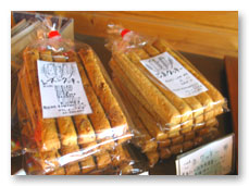 最近「マクロビオティック(*)」の考え方が普及してきましたが、これは以前から山下さんが取り組んできたこと。同じ志を持つ店との交流も盛んに行い、「自分も負けていられない!」と刺激されることも多々あるそうです。 「マクロビオティックの調理法を勉強して、パンと食事の相性の勉強もしたいんです。なかなか余力がなくって、まだ実現できていないんですが。食事に添えるパンだけでなく、もう少し食事に近いパンも作ってみたい。新作のクロワッサンには、チーズと黒胡椒を入れたものを作ってみました。チーズがはみ出てカリカリになった部分が美味しいんですよ。次は、ピザパイもやってみたいな。」 |