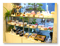 「トシ ヨロイヅカ」は恵比寿駅から徒歩8分の静かな街並みに佇んでいる。店内は白と黒を基調としたシックな空間。ショーケースの中には色鮮やかなケーキ、そして向かいの棚にはヨーロッパの地方菓子などが顔を揃えている。面白いのは店の奥に用意されたイートンスペースだ。白い大理石のカウンターに椅子が6席。寿司屋やバーを思わせる造りである。パティスリーでカウンター席というのはちょっと例がない。 |
