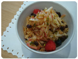 ミューズリー。ミューズリーってスーパーなどで見かけるけれど、買ったことがなくて。ミルクをかけて食べるのかと思っていましたが、ローズベーカリーでは水をかけてスライスしたりんごとフレッシュフルーツと混ぜ合わせながら食べるんですね!しっかり咀嚼して食べる感じが、とても気に入りました。ヘルシーだけどお腹にたまります