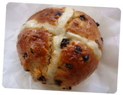 イースターの時にイギリスで食べられるホットクロスバンズ。期間限定で販売されていました